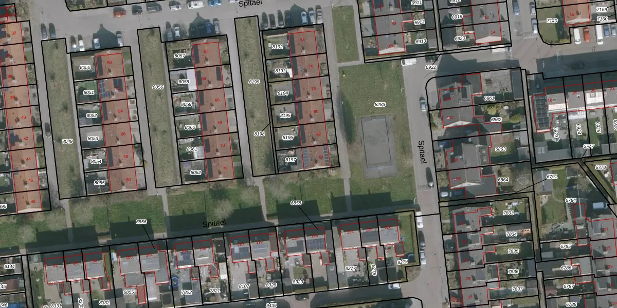 Het perceel waarop Spitael 84 staat heeft een oppervlakte van 150 m². Dit is een middelgroot perceel. De perceeloppervlakte wordt geregistreerd door het Kadaster. Gedetailleerde informatie over de maten van dit perceel kunt u vinden in het rapport Kadastrale kaart met maatvoering van Spitael 84.