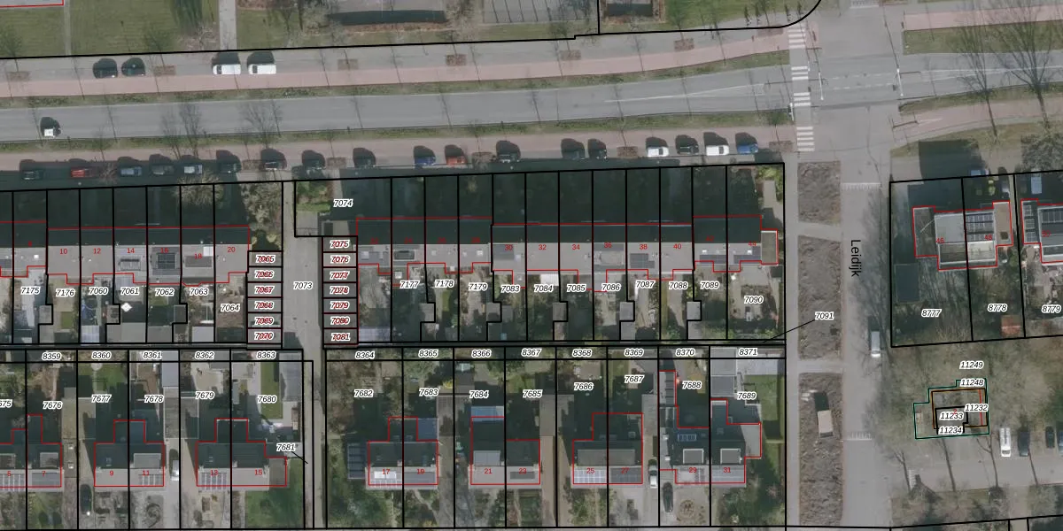 Gebruik de zoekbalk of klik op een perceel voor informatie over de adressen binnen dit perceel.