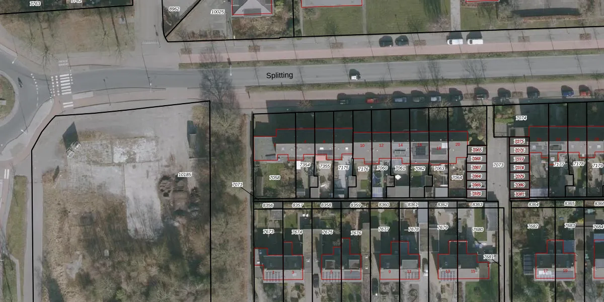 Het perceel waarop Splitting 4 staat heeft een oppervlakte van 179 m². Dit is een middelgroot perceel. De perceeloppervlakte wordt geregistreerd door het Kadaster. Gedetailleerde informatie over de maten van dit perceel kunt u vinden in het rapport Kadastrale kaart met maatvoering van Splitting 4.