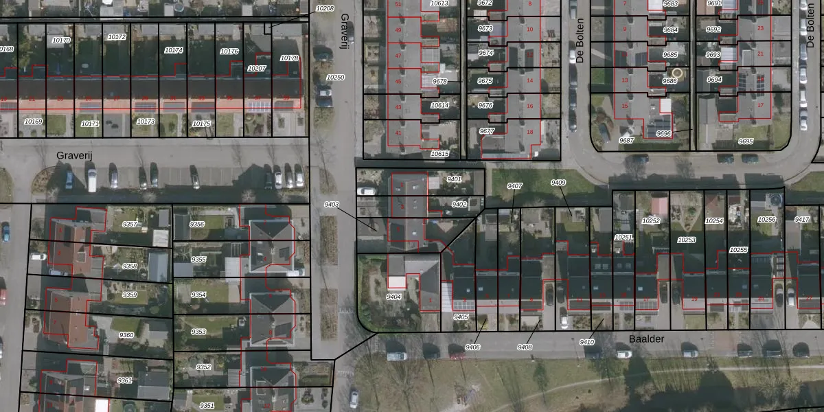 Gebruik de zoekbalk of klik op een perceel voor informatie over de adressen binnen dit perceel.