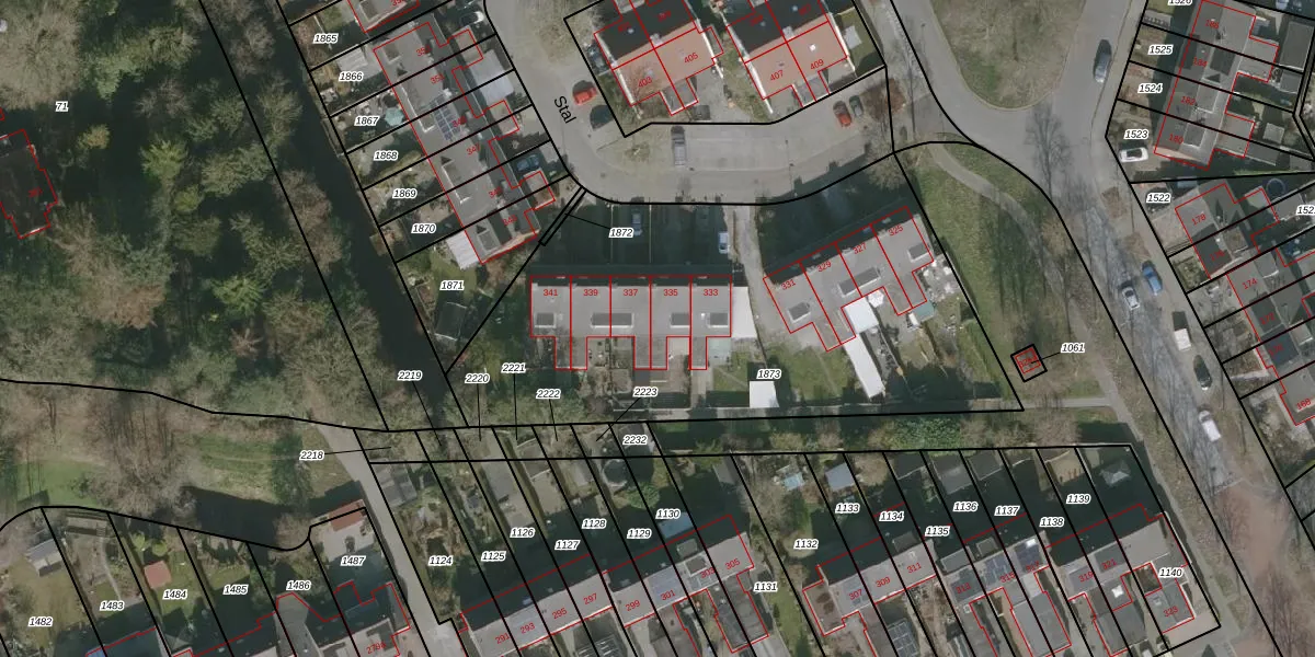 Het perceel waarop Stal 335 staat heeft een oppervlakte van 2448 m². Dit is een zeer groot perceel. De perceeloppervlakte wordt geregistreerd door het Kadaster. Gedetailleerde informatie over de maten van dit perceel kunt u vinden in het rapport Kadastrale kaart met maatvoering van Stal 335.