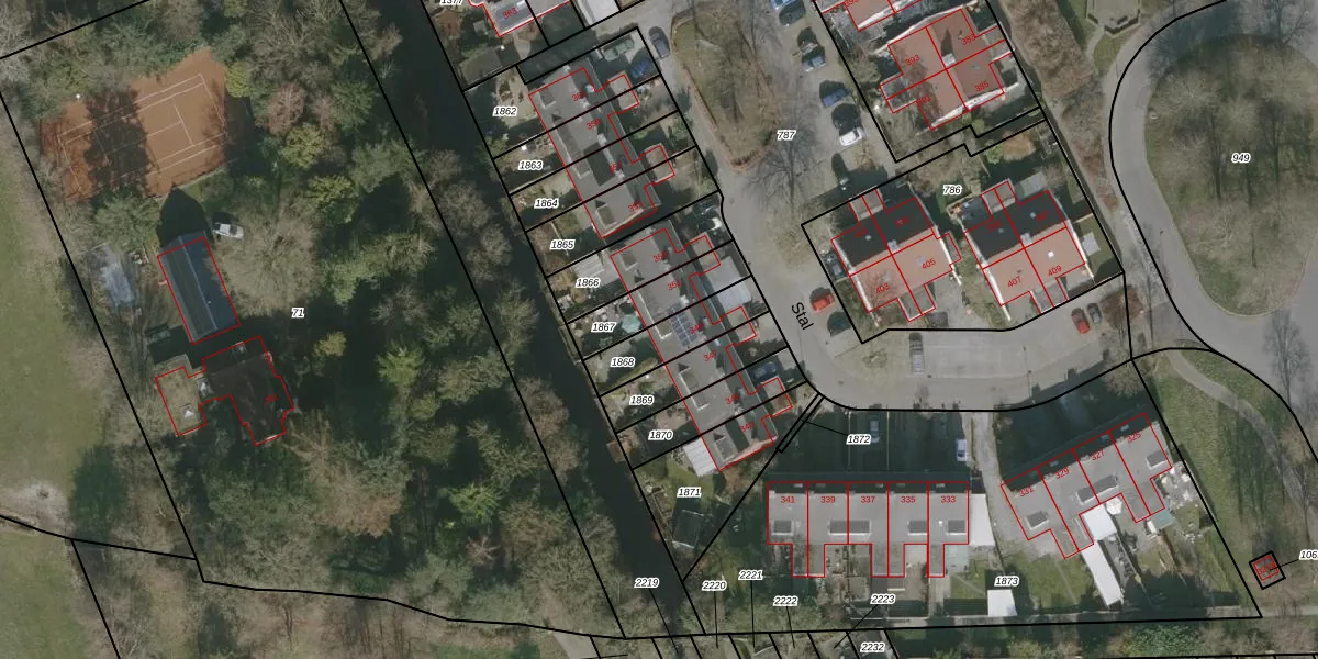 Het perceel waarop Stal 349 staat heeft een oppervlakte van 175 m². Dit is een middelgroot perceel. De perceeloppervlakte wordt geregistreerd door het Kadaster. Gedetailleerde informatie over de maten van dit perceel kunt u vinden in het rapport Kadastrale kaart met maatvoering van Stal 349.
