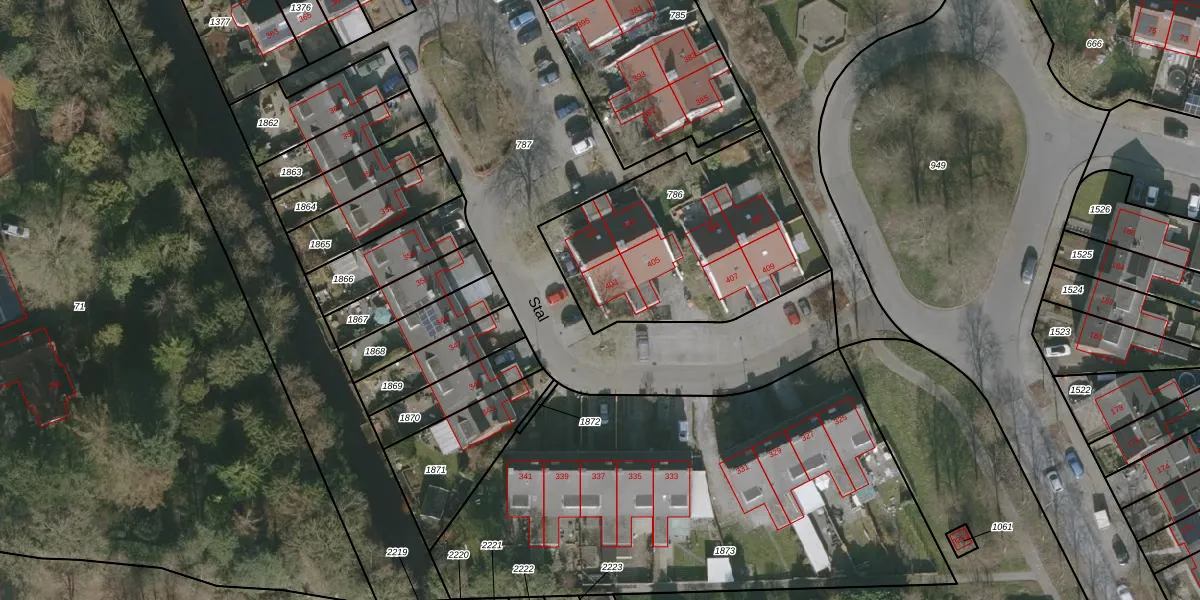 Het perceel waarop Stal 403 staat heeft een oppervlakte van 1010 m². Dit is een zeer groot perceel. De perceeloppervlakte wordt geregistreerd door het Kadaster. Gedetailleerde informatie over de maten van dit perceel kunt u vinden in het rapport Kadastrale kaart met maatvoering van Stal 403.