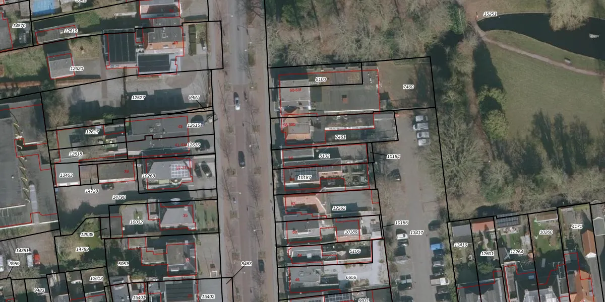 Gebruik de zoekbalk of klik op een perceel voor informatie over de adressen binnen dit perceel.
