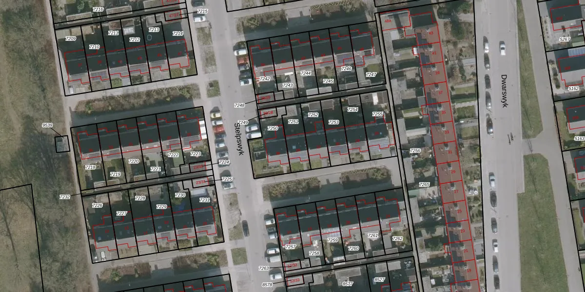 Het perceel waarop Stelpswyk 34 staat heeft een oppervlakte van 153 m². Dit is een middelgroot perceel. De perceeloppervlakte wordt geregistreerd door het Kadaster. Gedetailleerde informatie over de maten van dit perceel kunt u vinden in het rapport Kadastrale kaart met maatvoering van Stelpswyk 34.