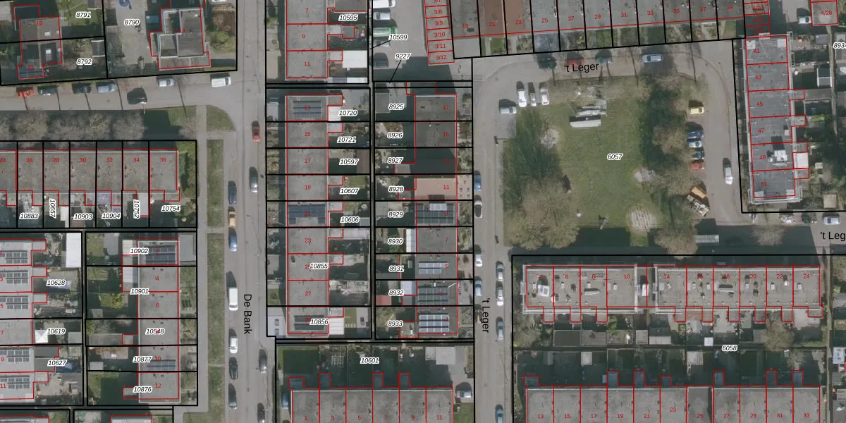 Het perceel waarop 't Leger 9 staat heeft een oppervlakte van 145 m². Dit is een middelgroot perceel. De perceeloppervlakte wordt geregistreerd door het Kadaster. Gedetailleerde informatie over de maten van dit perceel kunt u vinden in het rapport Kadastrale kaart met maatvoering van 't Leger 9.