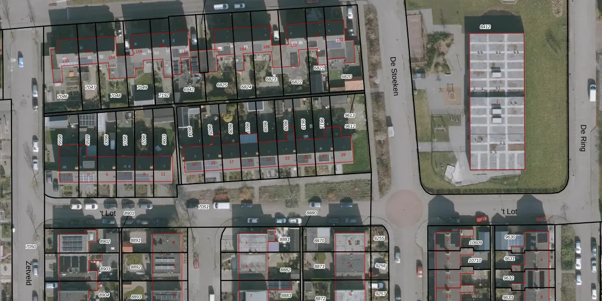 Gebruik de zoekbalk of klik op een perceel voor informatie over de adressen binnen dit perceel.