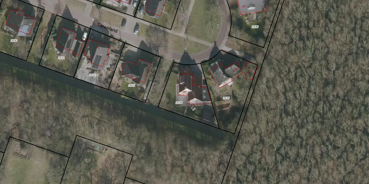 Het perceel waarop Tarweland 100 staat heeft een oppervlakte van 700 m². Dit is een groot perceel. De perceeloppervlakte wordt geregistreerd door het Kadaster. Gedetailleerde informatie over de maten van dit perceel kunt u vinden in het rapport Kadastrale kaart met maatvoering van Tarweland 100.