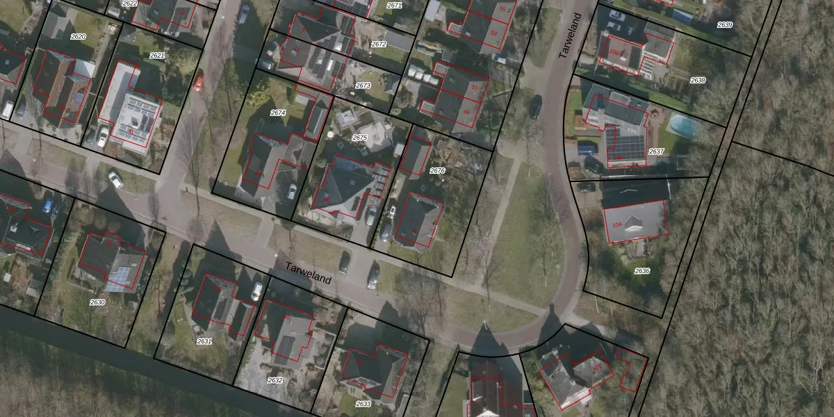 Het perceel waarop Tarweland 47 staat heeft een oppervlakte van 654 m². Dit is een groot perceel. De perceeloppervlakte wordt geregistreerd door het Kadaster. Gedetailleerde informatie over de maten van dit perceel kunt u vinden in het rapport Kadastrale kaart met maatvoering van Tarweland 47.