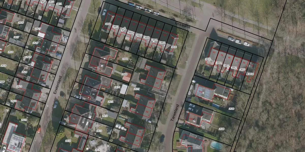 Het perceel waarop Tarweland 59 staat heeft een oppervlakte van 1559 m². Dit is een zeer groot perceel. De perceeloppervlakte wordt geregistreerd door het Kadaster. Gedetailleerde informatie over de maten van dit perceel kunt u vinden in het rapport Kadastrale kaart met maatvoering van Tarweland 59.