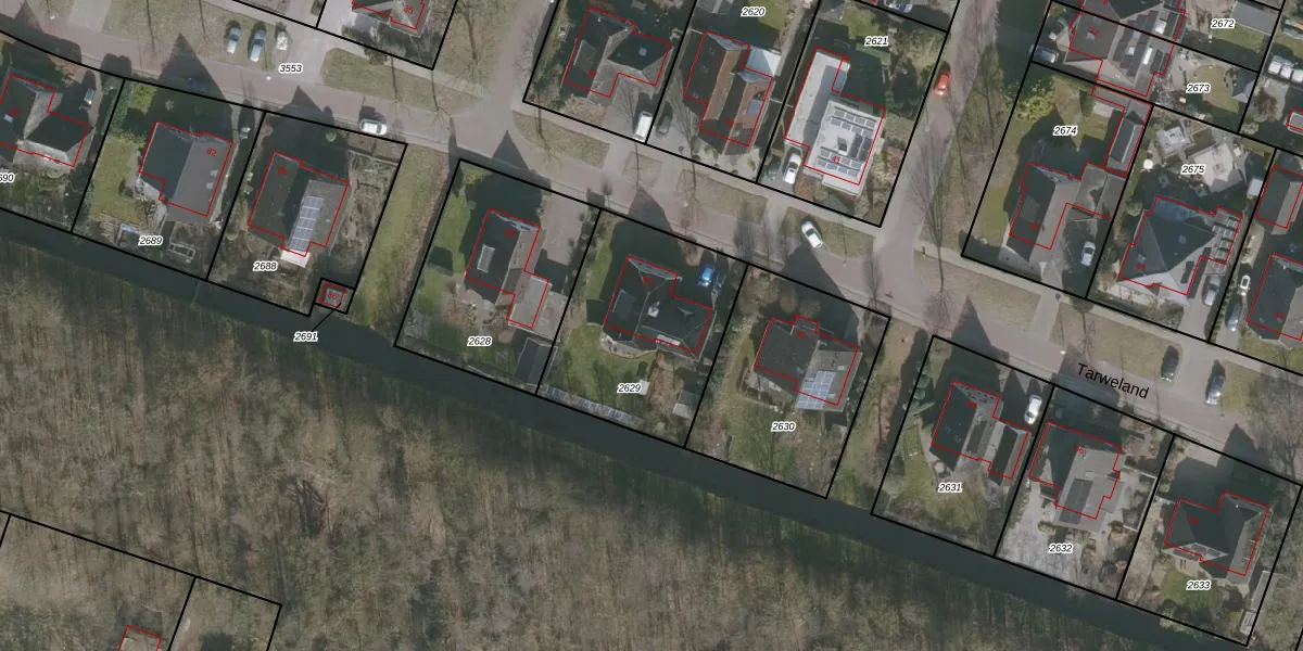 Het perceel waarop Tarweland 90 staat heeft een oppervlakte van 731 m². Dit is een groot perceel. De perceeloppervlakte wordt geregistreerd door het Kadaster. Gedetailleerde informatie over de maten van dit perceel kunt u vinden in het rapport Kadastrale kaart met maatvoering van Tarweland 90.