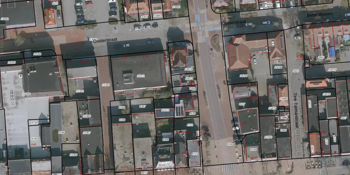 Gebruik de zoekbalk of klik op een perceel voor informatie over de adressen binnen dit perceel.