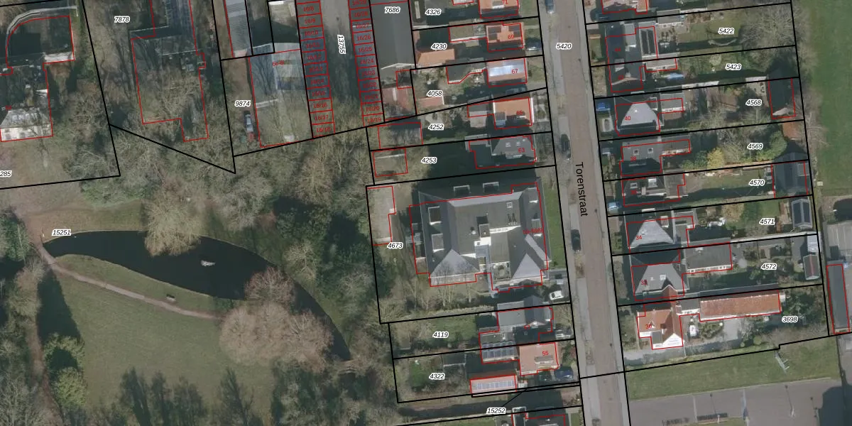 Het perceel waarop Torenstraat 59-2 staat heeft een oppervlakte van 1460 m². Dit is een zeer groot perceel. De perceeloppervlakte wordt geregistreerd door het Kadaster. Gedetailleerde informatie over de maten van dit perceel kunt u vinden in het rapport Kadastrale kaart met maatvoering van Torenstraat 59-2.