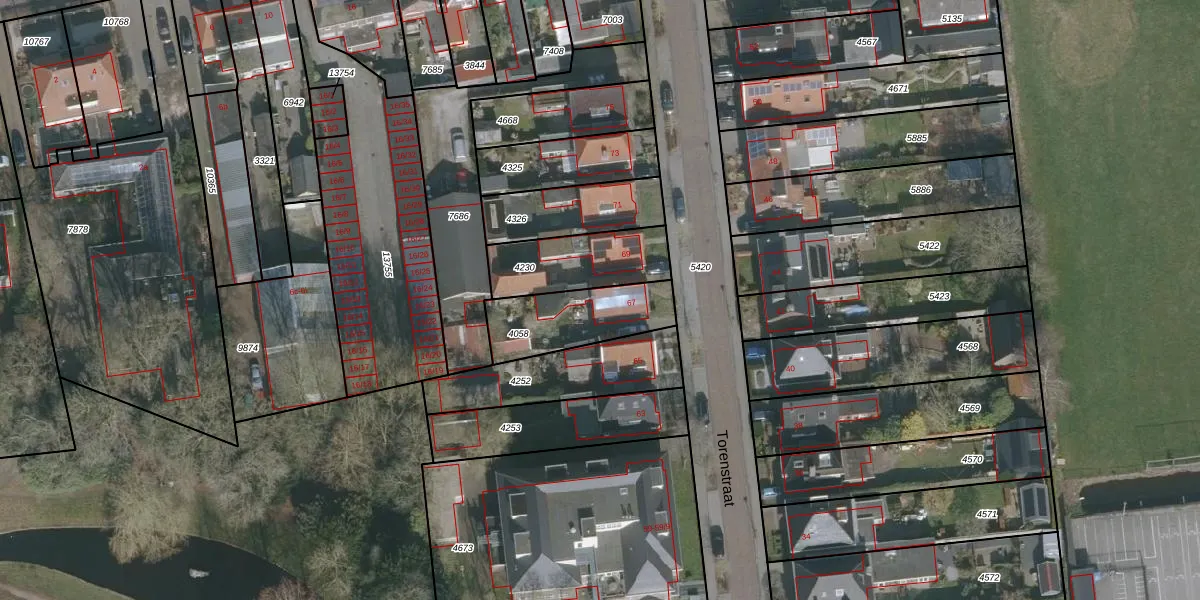 Gebruik de zoekbalk of klik op een perceel voor informatie over de adressen binnen dit perceel.