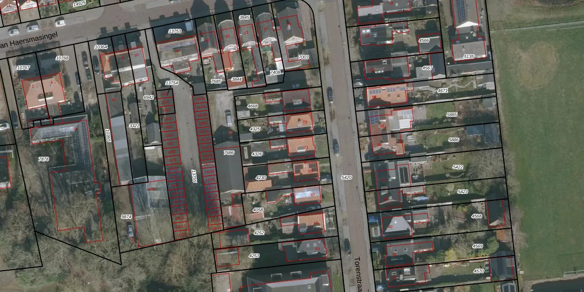 Het perceel waarop Torenstraat 71 staat heeft een oppervlakte van 247 m². Dit is een middelgroot perceel. De perceeloppervlakte wordt geregistreerd door het Kadaster. Gedetailleerde informatie over de maten van dit perceel kunt u vinden in het rapport Kadastrale kaart met maatvoering van Torenstraat 71.