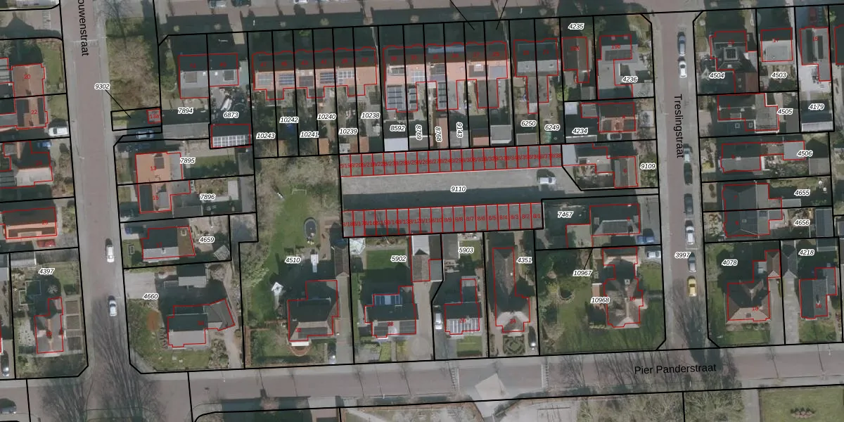 Treslingstraat 8-11 is gelegen op kadastraal perceel DTN02C9110. Deze kadastrale aanduiding is uniek en wordt gebruikt door het Kadaster om eigendomsrechten en andere zakelijke rechten vast te leggen. Het perceel maakt onderdeel uit van de kadastrale gemeente Drachten.