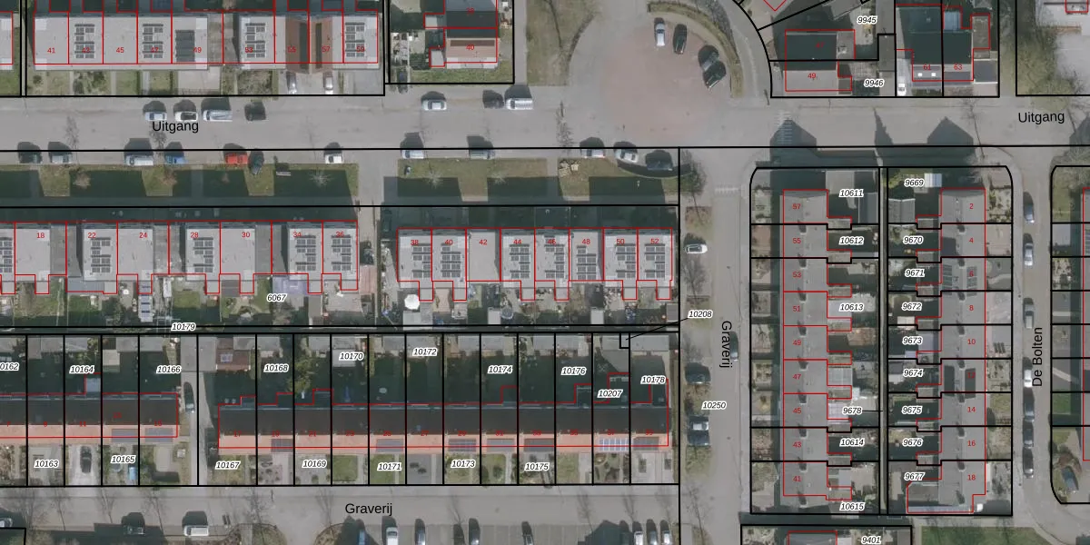 Het perceel waarop Uitgang 46 staat heeft een oppervlakte van 3280 m². Dit is een zeer groot perceel. De perceeloppervlakte wordt geregistreerd door het Kadaster. Gedetailleerde informatie over de maten van dit perceel kunt u vinden in het rapport Kadastrale kaart met maatvoering van Uitgang 46.