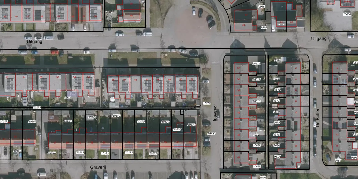 Uitgang 50 is gelegen op kadastraal perceel DTN02C6067. Deze kadastrale aanduiding is uniek en wordt gebruikt door het Kadaster om eigendomsrechten en andere zakelijke rechten vast te leggen. Het perceel maakt onderdeel uit van de kadastrale gemeente Drachten.