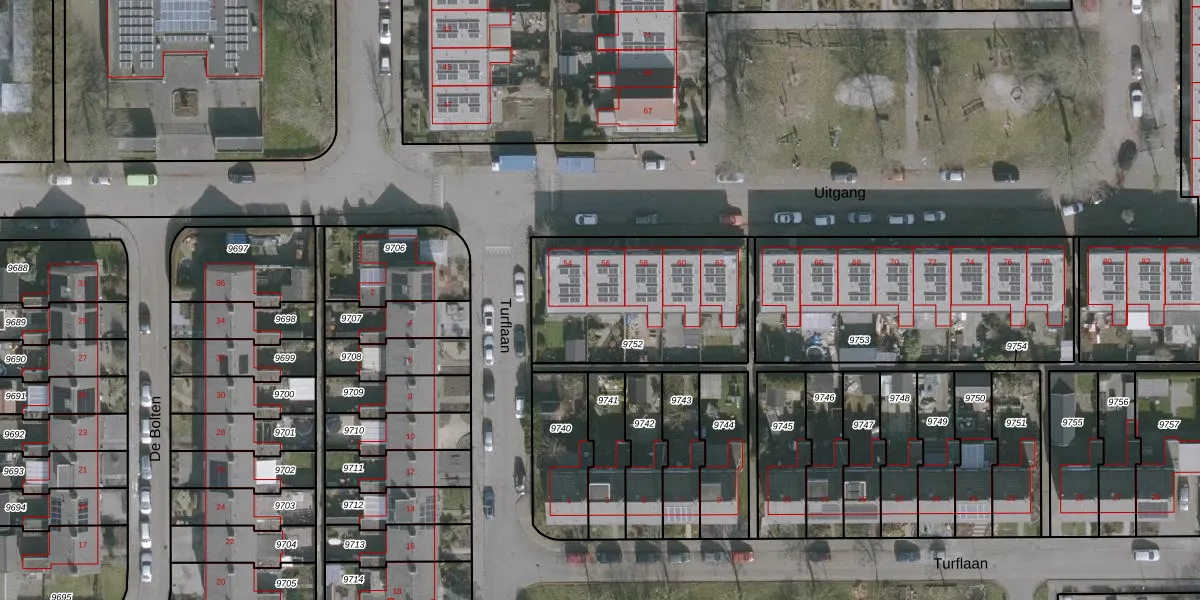 Het perceel waarop Uitgang 56 staat heeft een oppervlakte van 758 m². Dit is een groot perceel. De perceeloppervlakte wordt geregistreerd door het Kadaster. Gedetailleerde informatie over de maten van dit perceel kunt u vinden in het rapport Kadastrale kaart met maatvoering van Uitgang 56.