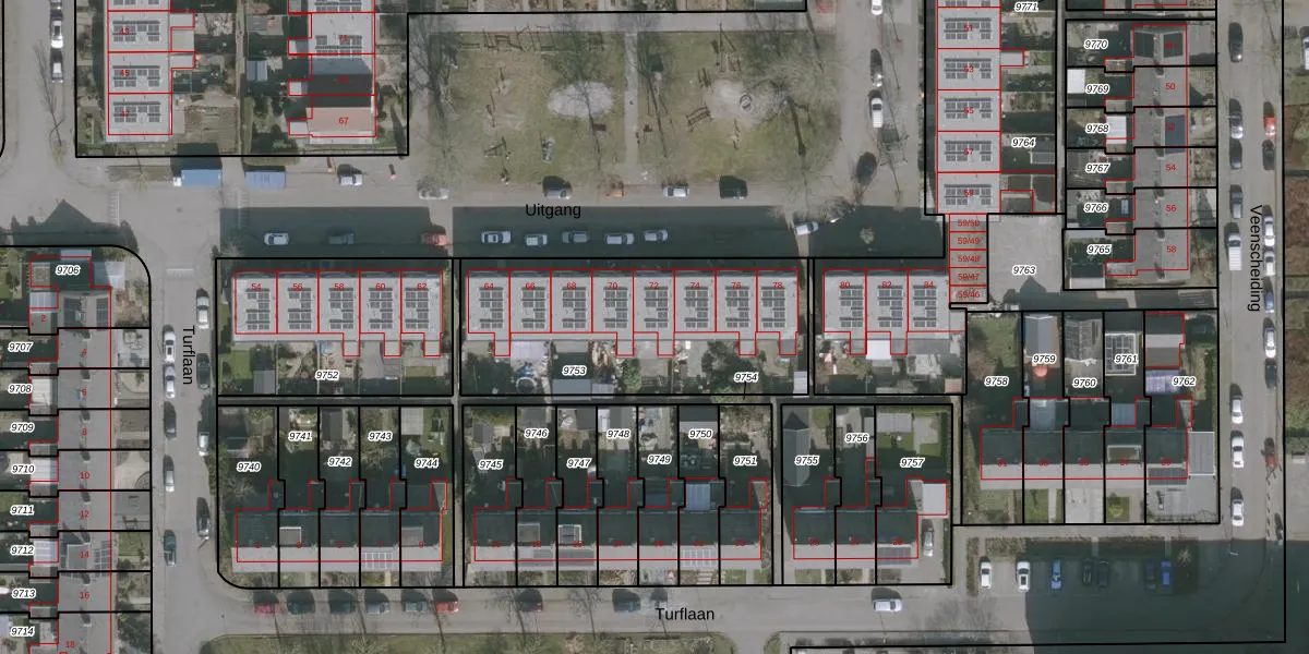 Uitgang 72 is gelegen op kadastraal perceel DTN02C9753. Deze kadastrale aanduiding is uniek en wordt gebruikt door het Kadaster om eigendomsrechten en andere zakelijke rechten vast te leggen. Het perceel maakt onderdeel uit van de kadastrale gemeente Drachten.