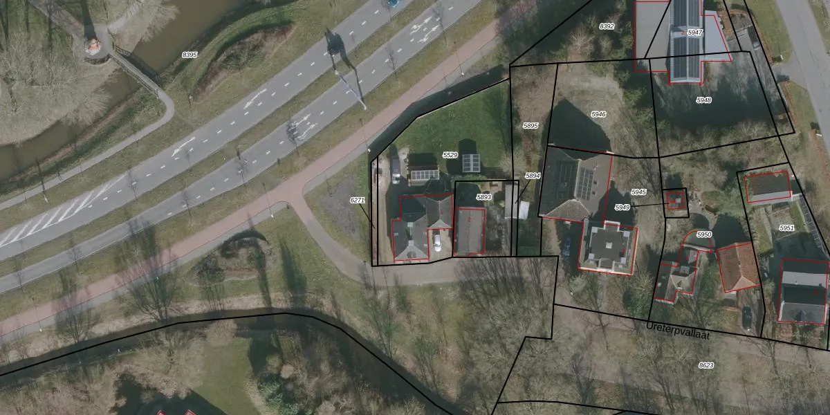 Het perceel waarop Ureterpvallaat 1 staat heeft een oppervlakte van 905 m². Dit is een groot perceel. De perceeloppervlakte wordt geregistreerd door het Kadaster. Gedetailleerde informatie over de maten van dit perceel kunt u vinden in het rapport Kadastrale kaart met maatvoering van Ureterpvallaat 1.