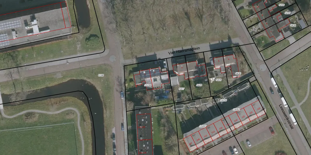 Het perceel waarop Van Haersmaplein 2 staat heeft een oppervlakte van 859 m². Dit is een groot perceel. De perceeloppervlakte wordt geregistreerd door het Kadaster. Gedetailleerde informatie over de maten van dit perceel kunt u vinden in het rapport Kadastrale kaart met maatvoering van Van Haersmaplein 2.