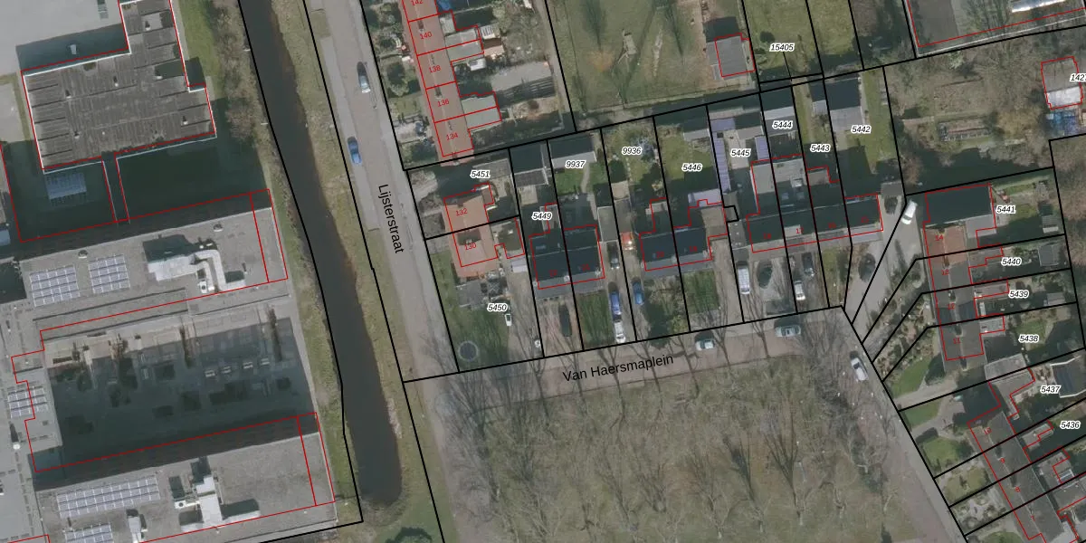 Gebruik de zoekbalk of klik op een perceel voor informatie over de adressen binnen dit perceel.