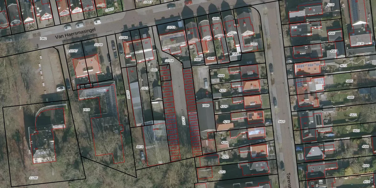 Het perceel waarop Van Haersmasingel 16-31 staat heeft een oppervlakte van 933 m². Dit is een groot perceel. De perceeloppervlakte wordt geregistreerd door het Kadaster. Gedetailleerde informatie over de maten van dit perceel kunt u vinden in het rapport Kadastrale kaart met maatvoering van Van Haersmasingel 16-31.