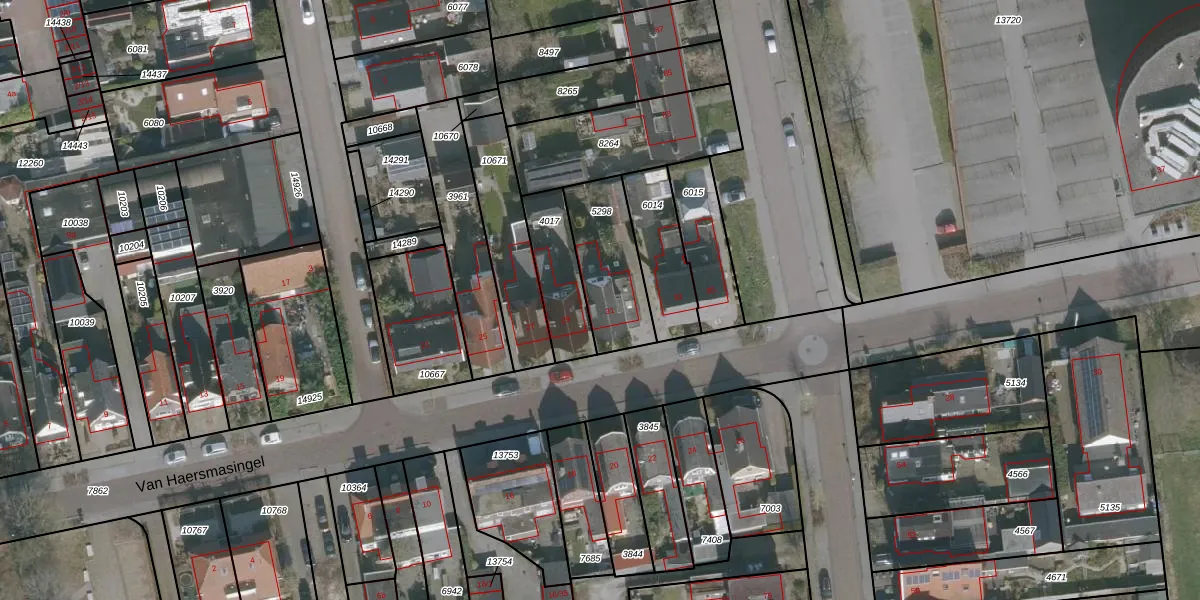 Gebruik de zoekbalk of klik op een perceel voor informatie over de adressen binnen dit perceel.