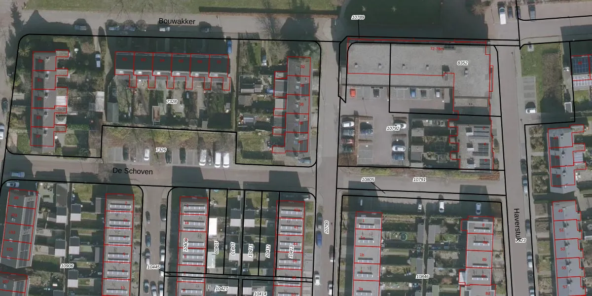 Het perceel waarop Vlasakkers 40 staat heeft een oppervlakte van 3815 m². Dit is een zeer groot perceel. De perceeloppervlakte wordt geregistreerd door het Kadaster. Gedetailleerde informatie over de maten van dit perceel kunt u vinden in het rapport Kadastrale kaart met maatvoering van Vlasakkers 40.