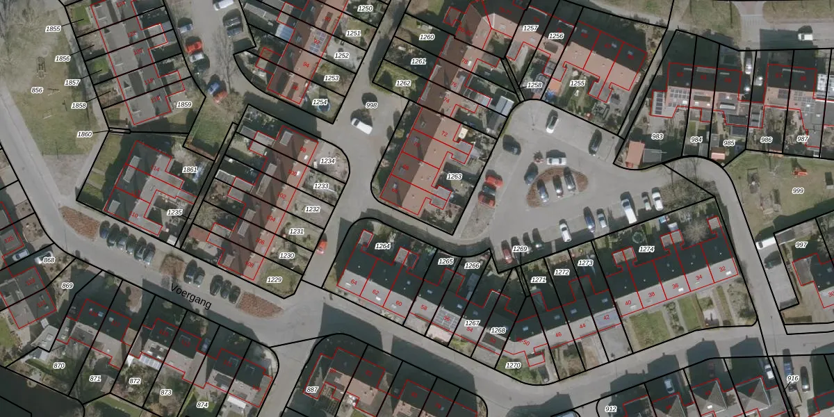 Het perceel waarop Voergang 66 staat heeft een oppervlakte van 583 m². Dit is een groot perceel. De perceeloppervlakte wordt geregistreerd door het Kadaster. Gedetailleerde informatie over de maten van dit perceel kunt u vinden in het rapport Kadastrale kaart met maatvoering van Voergang 66.