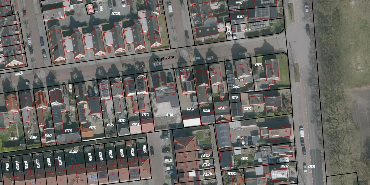 Het perceel waarop Vogelzang 150 staat heeft een oppervlakte van 317 m². Dit is een groot perceel. De perceeloppervlakte wordt geregistreerd door het Kadaster. Gedetailleerde informatie over de maten van dit perceel kunt u vinden in het rapport Kadastrale kaart met maatvoering van Vogelzang 150.