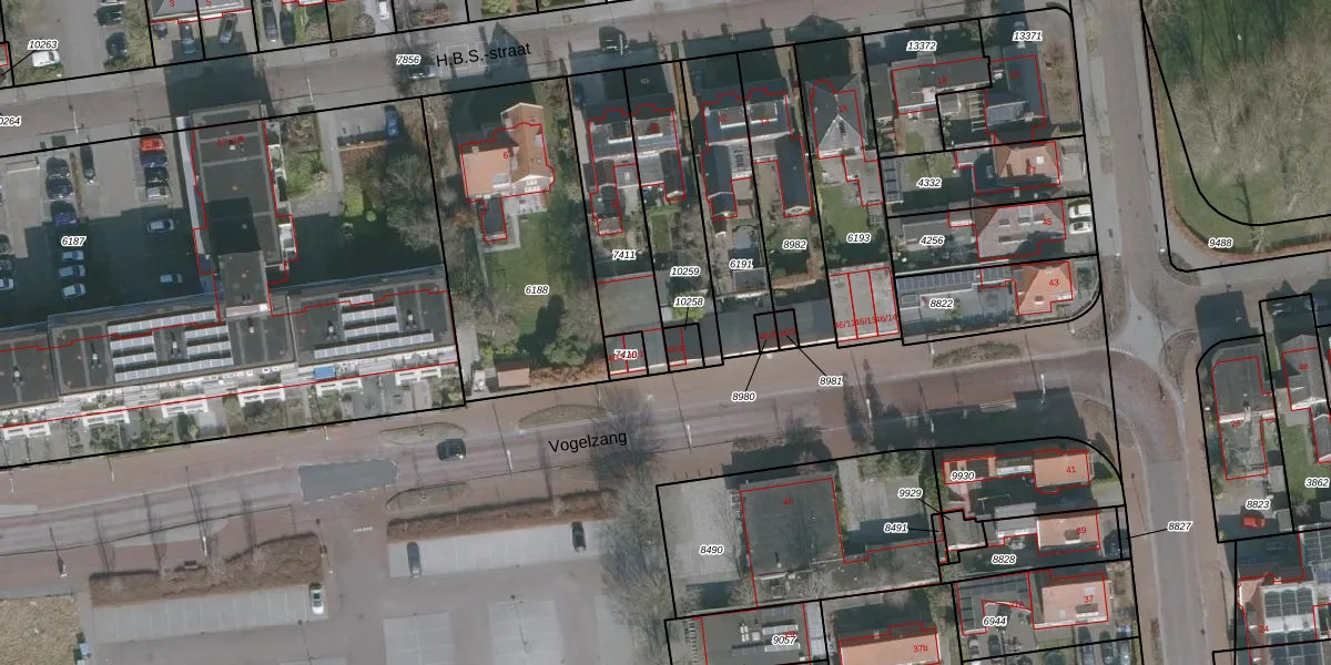 Het perceel waarop Vogelzang 46-4 staat heeft een oppervlakte van 38 m². Dit is een klein perceel. De perceeloppervlakte wordt geregistreerd door het Kadaster. Gedetailleerde informatie over de maten van dit perceel kunt u vinden in het rapport Kadastrale kaart met maatvoering van Vogelzang 46-4.