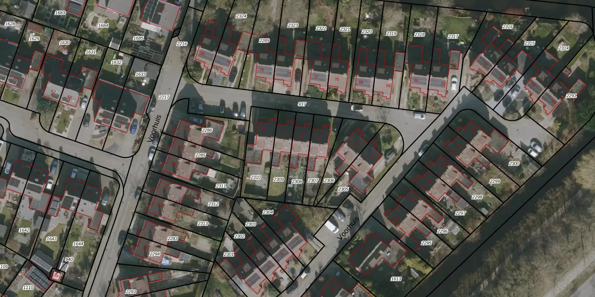 Het perceel waarop Voorhuis 15 staat heeft een oppervlakte van 185 m². Dit is een middelgroot perceel. De perceeloppervlakte wordt geregistreerd door het Kadaster. Gedetailleerde informatie over de maten van dit perceel kunt u vinden in het rapport Kadastrale kaart met maatvoering van Voorhuis 15.