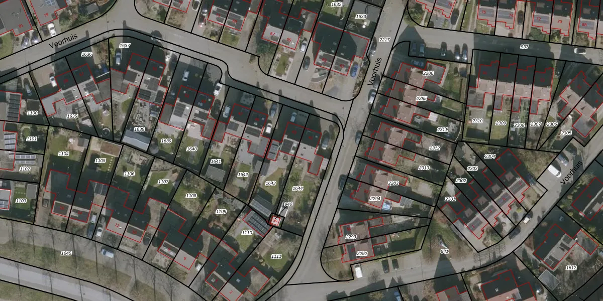 Het perceel waarop Voorhuis 41 staat heeft een oppervlakte van 424 m². Dit is een groot perceel. De perceeloppervlakte wordt geregistreerd door het Kadaster. Gedetailleerde informatie over de maten van dit perceel kunt u vinden in het rapport Kadastrale kaart met maatvoering van Voorhuis 41.