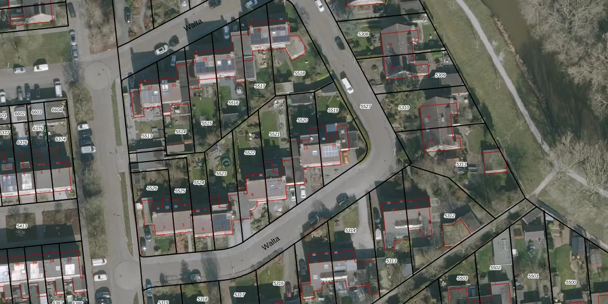 Het perceel waarop Walta 13 staat heeft een oppervlakte van 319 m². Dit is een groot perceel. De perceeloppervlakte wordt geregistreerd door het Kadaster. Gedetailleerde informatie over de maten van dit perceel kunt u vinden in het rapport Kadastrale kaart met maatvoering van Walta 13.