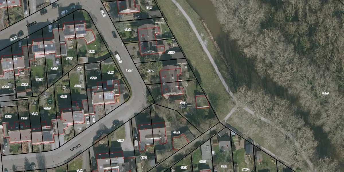 Het perceel waarop Walta 18 staat heeft een oppervlakte van 692 m². Dit is een groot perceel. De perceeloppervlakte wordt geregistreerd door het Kadaster. Gedetailleerde informatie over de maten van dit perceel kunt u vinden in het rapport Kadastrale kaart met maatvoering van Walta 18.