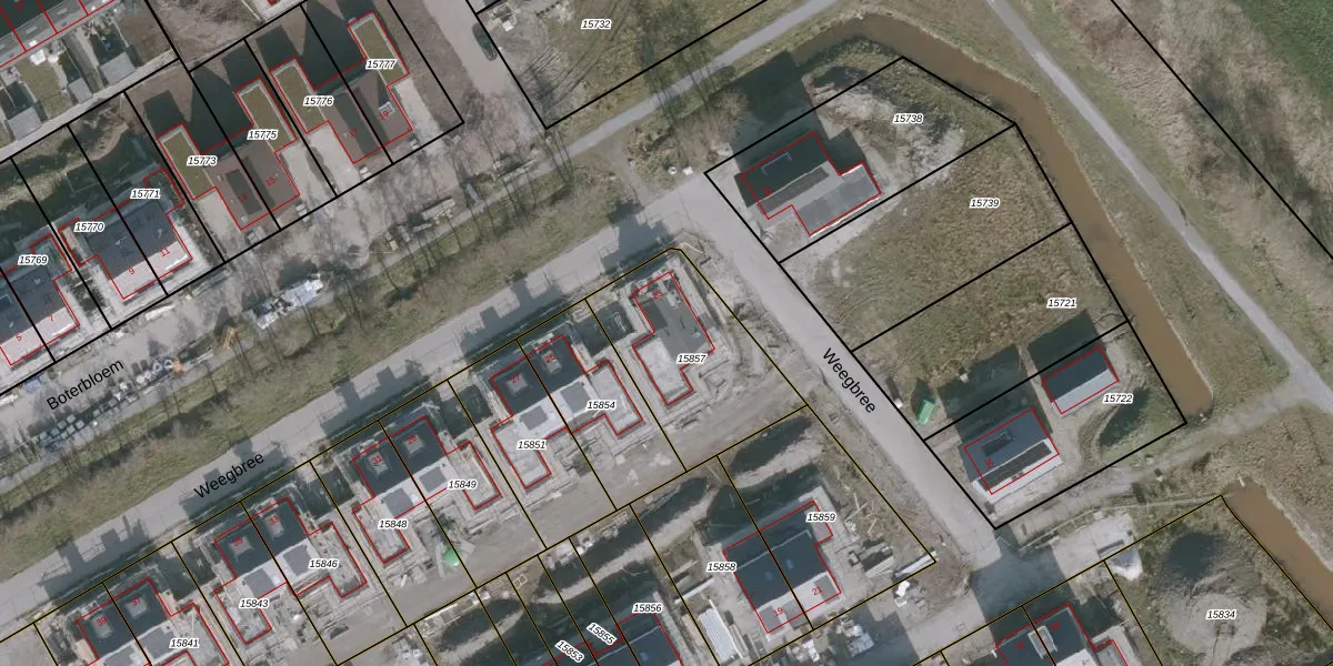 Het perceel waarop Weegbree 23 staat heeft een oppervlakte van 555 m². Dit is een groot perceel. De perceeloppervlakte wordt geregistreerd door het Kadaster. Gedetailleerde informatie over de maten van dit perceel kunt u vinden in het rapport Kadastrale kaart met maatvoering van Weegbree 23.