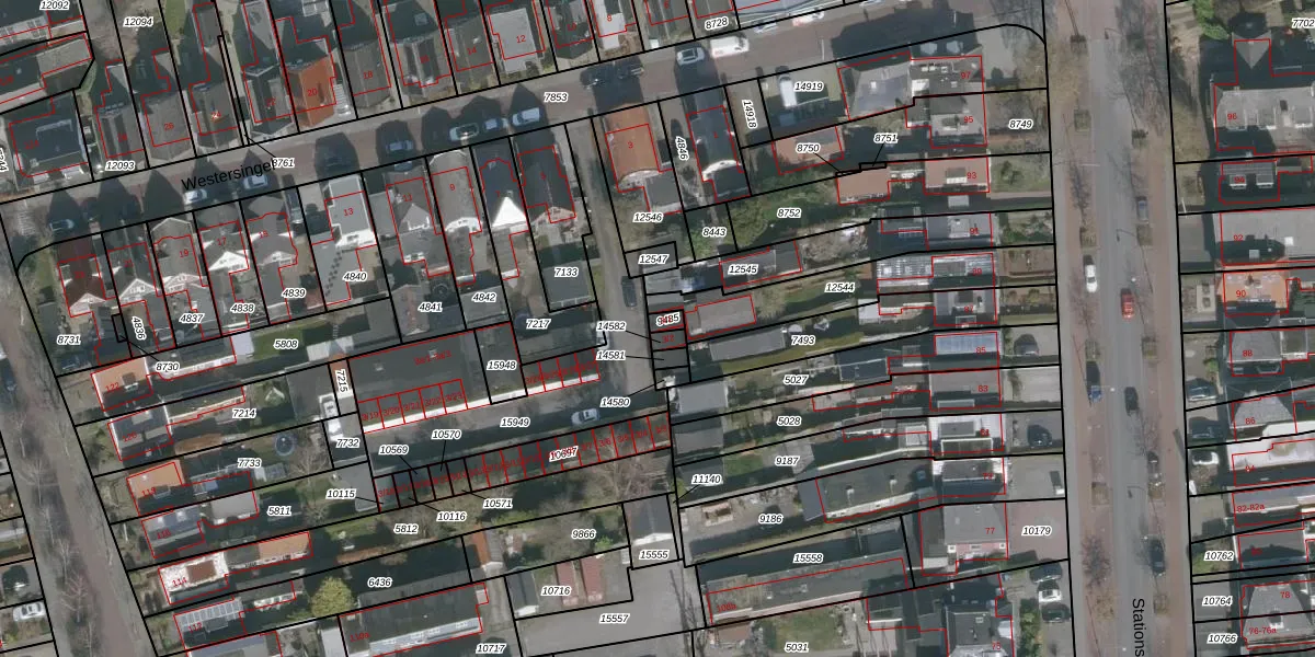 Gebruik de zoekbalk of klik op een perceel voor informatie over de adressen binnen dit perceel.