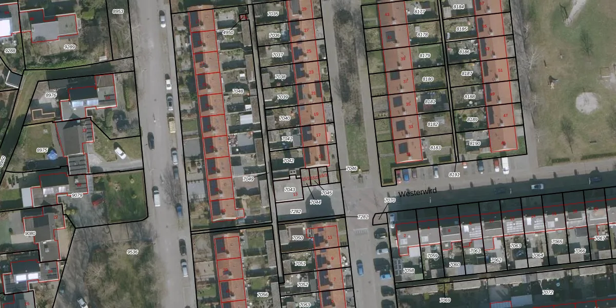 Gebruik de zoekbalk of klik op een perceel voor informatie over de adressen binnen dit perceel.