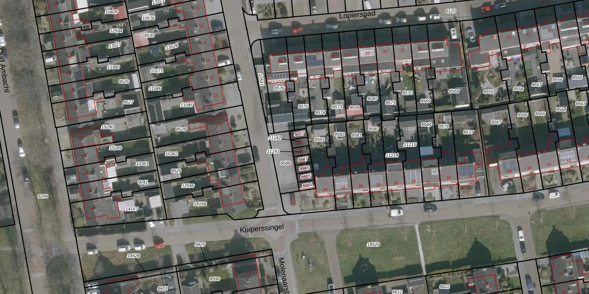 Het perceel waarop Weversburen 1-6 staat heeft een oppervlakte van 17 m². Dit is een klein perceel. De perceeloppervlakte wordt geregistreerd door het Kadaster. Gedetailleerde informatie over de maten van dit perceel kunt u vinden in het rapport Kadastrale kaart met maatvoering van Weversburen 1-6.