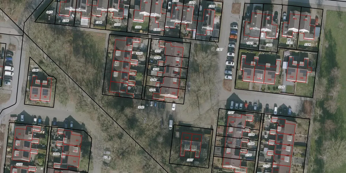 Gebruik de zoekbalk of klik op een perceel voor informatie over de adressen binnen dit perceel.