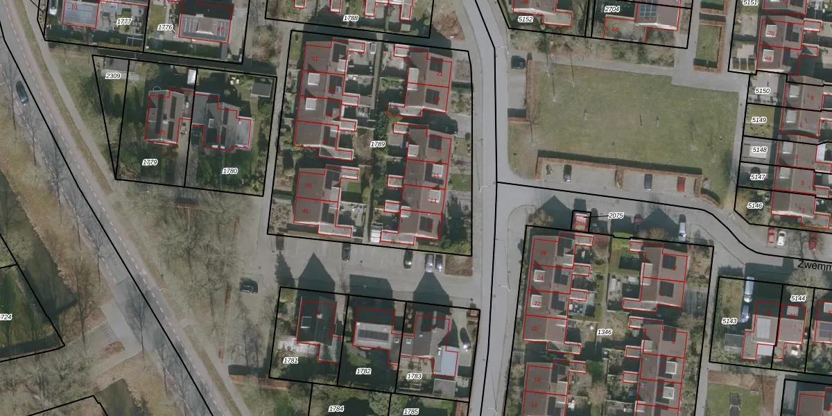 Het perceel waarop Wimerts 13 staat heeft een oppervlakte van 2284 m². Dit is een zeer groot perceel. De perceeloppervlakte wordt geregistreerd door het Kadaster. Gedetailleerde informatie over de maten van dit perceel kunt u vinden in het rapport Kadastrale kaart met maatvoering van Wimerts 13.