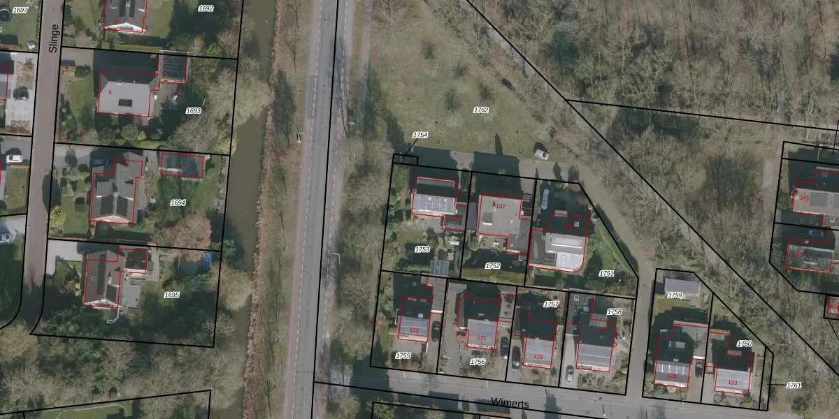 Het perceel waarop Wimerts 135 staat heeft een oppervlakte van 491 m². Dit is een groot perceel. De perceeloppervlakte wordt geregistreerd door het Kadaster. Gedetailleerde informatie over de maten van dit perceel kunt u vinden in het rapport Kadastrale kaart met maatvoering van Wimerts 135.