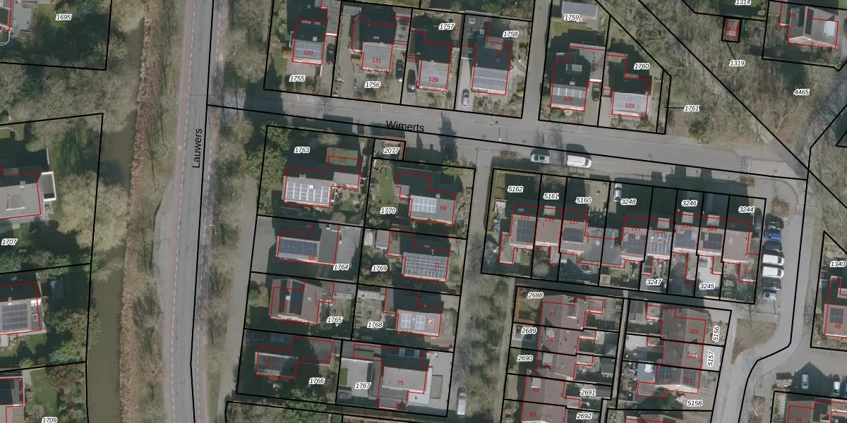 Het perceel waarop Wimerts 69 staat heeft een oppervlakte van 407 m². Dit is een groot perceel. De perceeloppervlakte wordt geregistreerd door het Kadaster. Gedetailleerde informatie over de maten van dit perceel kunt u vinden in het rapport Kadastrale kaart met maatvoering van Wimerts 69.