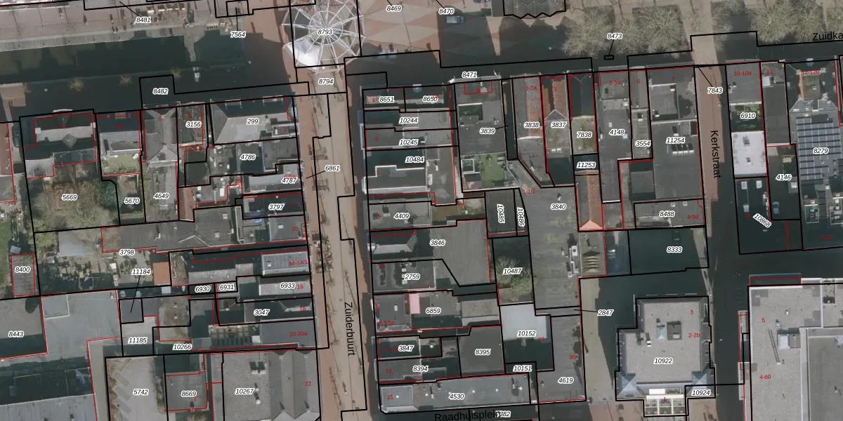 Gebruik de zoekbalk of klik op een perceel voor informatie over de adressen binnen dit perceel.