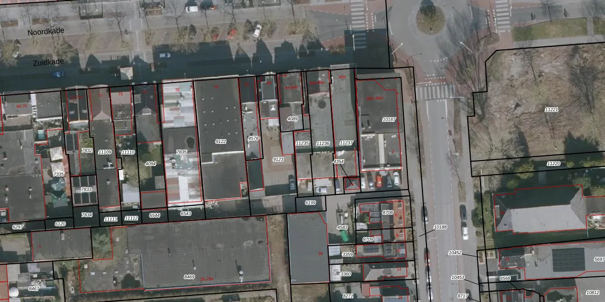 Gebruik de zoekbalk of klik op een perceel voor informatie over de adressen binnen dit perceel.