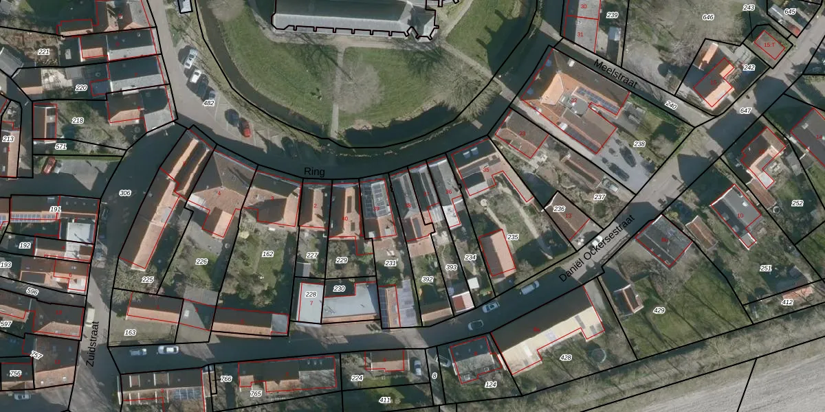 Het perceel waarop Ring 38 staat heeft een oppervlakte van 249 m². Dit is een middelgroot perceel. De perceeloppervlakte wordt geregistreerd door het Kadaster. Gedetailleerde informatie over de maten van dit perceel kunt u vinden in het rapport Kadastrale kaart met maatvoering van Ring 38.
