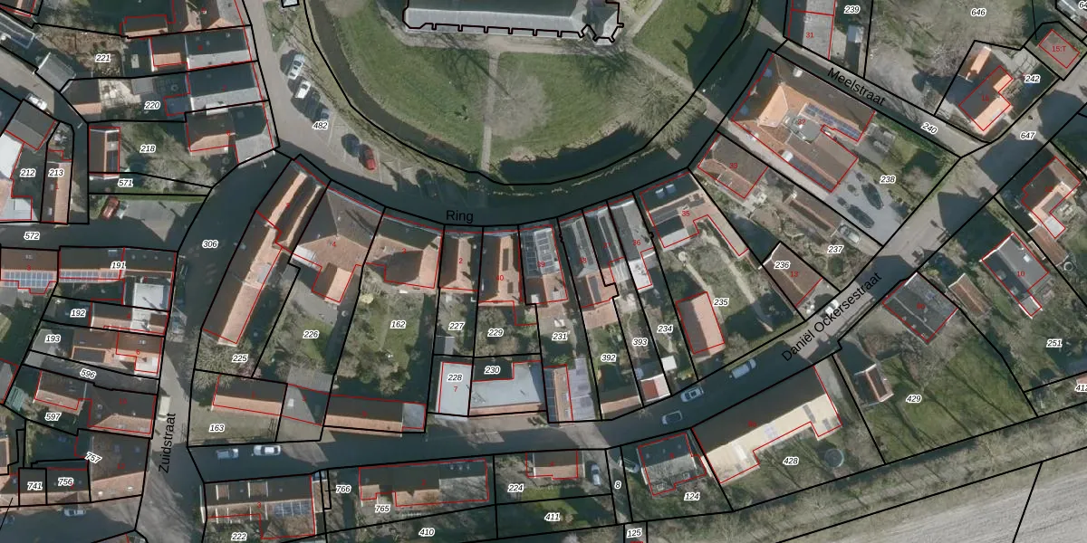 Het perceel waarop Ring 39 staat heeft een oppervlakte van 323 m². Dit is een groot perceel. De perceeloppervlakte wordt geregistreerd door het Kadaster. Gedetailleerde informatie over de maten van dit perceel kunt u vinden in het rapport Kadastrale kaart met maatvoering van Ring 39.