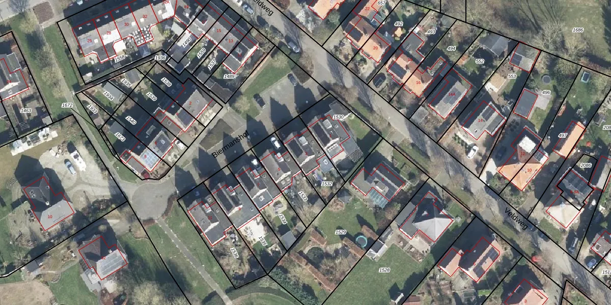 Gebruik de zoekbalk of klik op een perceel voor informatie over de adressen binnen dit perceel.